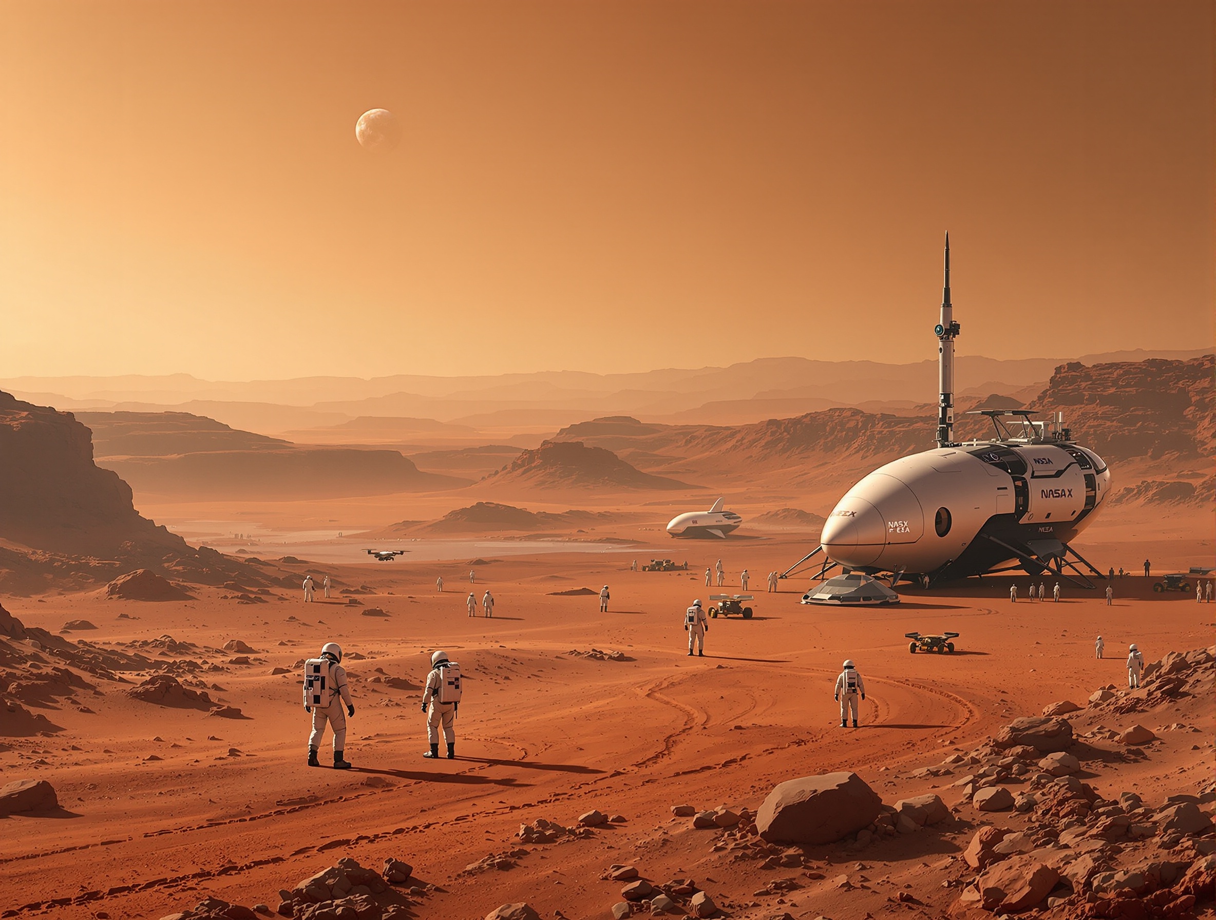 NASA koncentruje swoje wysiłki na programie Artemis jako etapie przygotowawczym do przyszłych ekspedycji marsjańskich. Równolegle rozwija projekty takie jak Mars Sample Return. Z kolei SpaceX pod przewodnictwem Elona Muska realizuje wizję kolonizacji Marsa dzięki innowacyjnemu systemowi Starship – statkowi kosmicznemu wielokrotnego użytku, który ma zdolność transportu znacznych ładunków oraz załogi. ESA natomiast angażuje się w przedsięwzięcia badawcze, takie jak ExoMars, mające na celu: